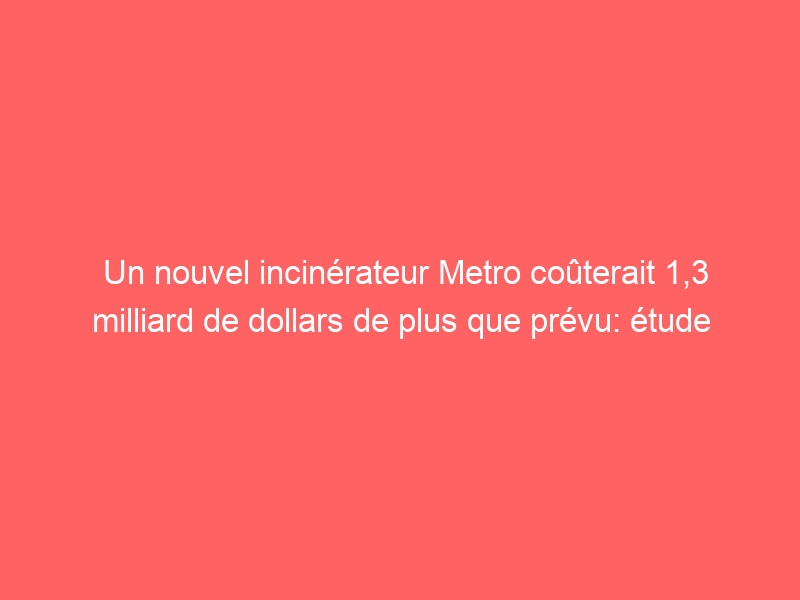 Un nouvel incinérateur Metro coûterait 1,3 milliard de dollars de plus que prévu: étude